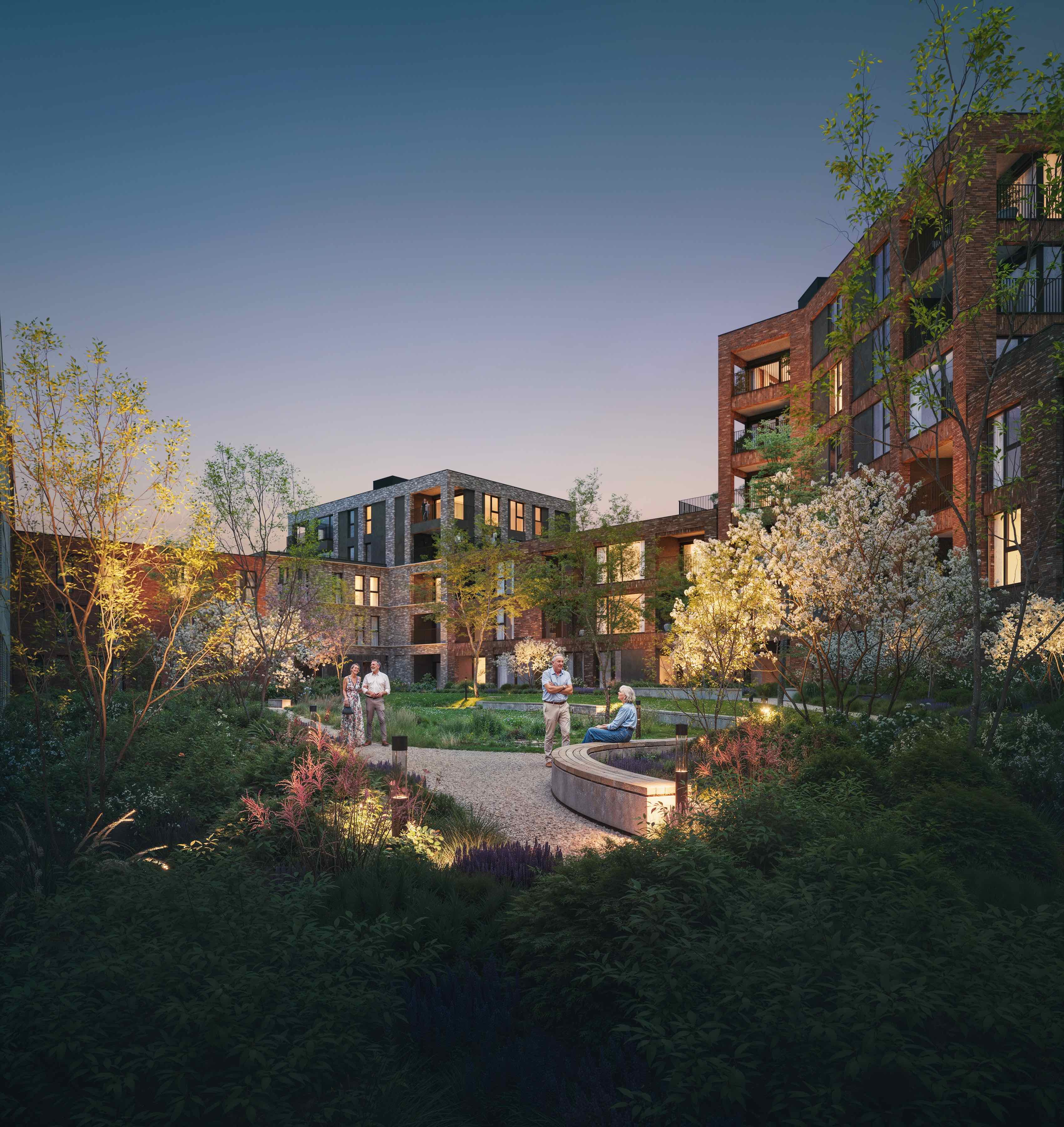 in een nieuwe, groene stadswijk.